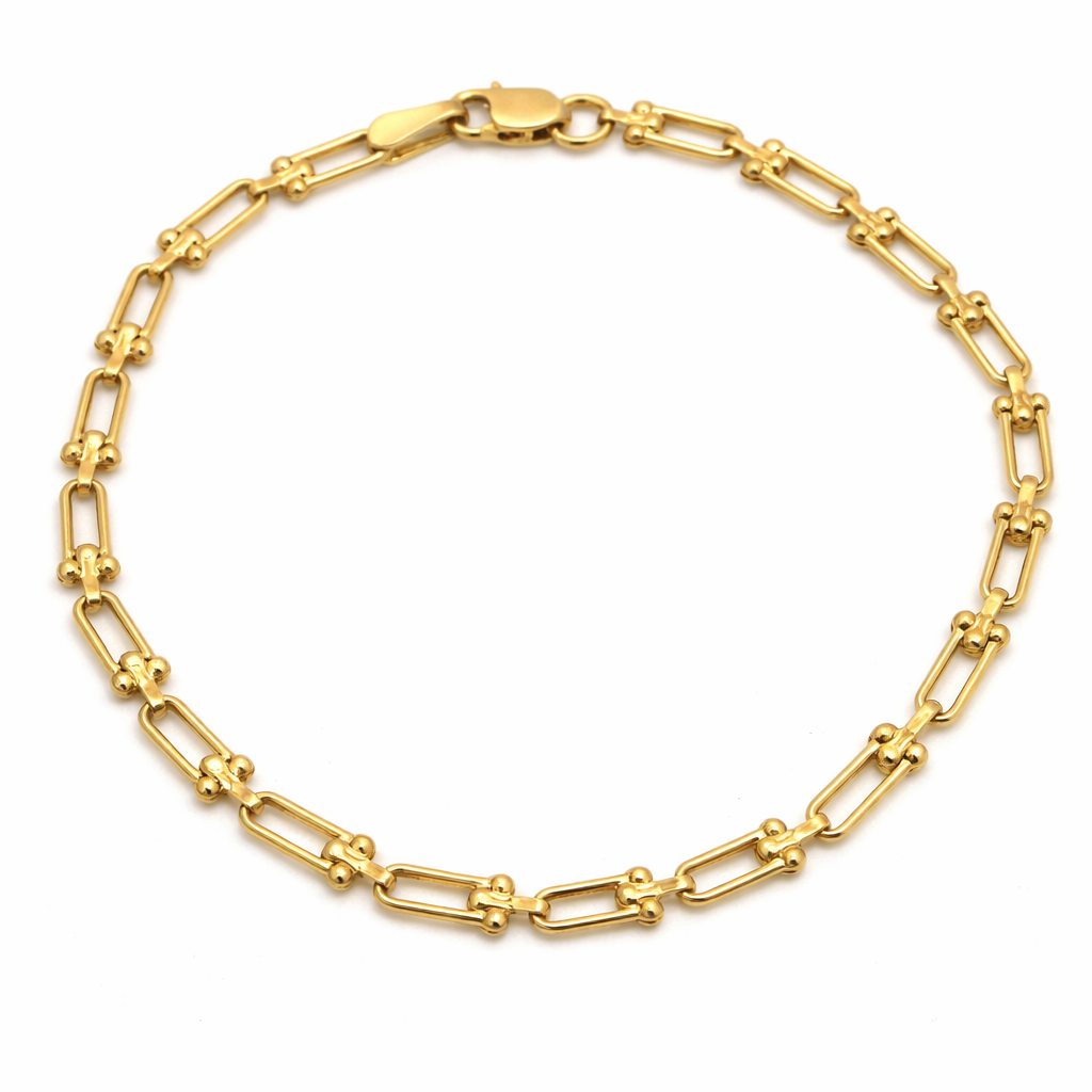 The GZTF Hardware Solid Chain Bracelet is crafted from real gold, ensuring a brilliant and durable piece of jewelry. Its solid chain links showcase the strength and longevity of the bracelet, making it a perfect accessory for everyday wear or special occasions.