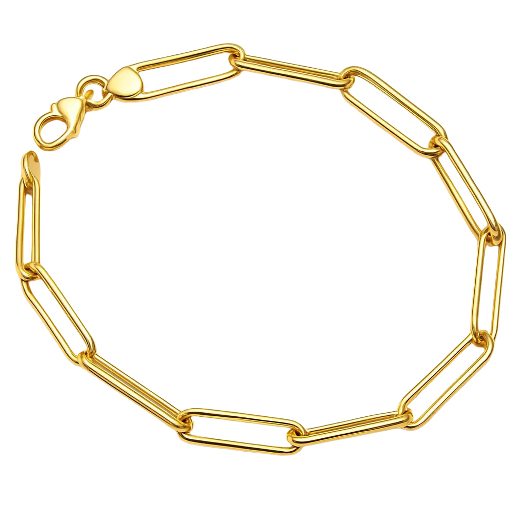 Made with the utmost craftsmanship, this Real Gold Long Round Paper Clip Chain Bracelet promises durability and a radiant shine, making it a cherished piece in your jewelry collection for years to come.